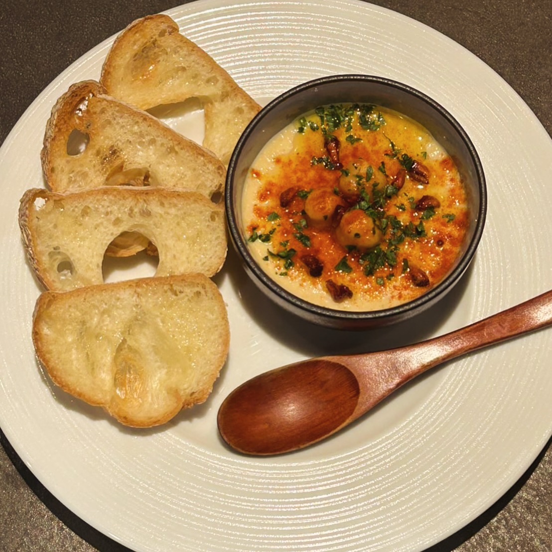 オリーブオイルとスパイスを加えて仕上げた、シンプルなのに奥深い、温もりを感じる一皿。