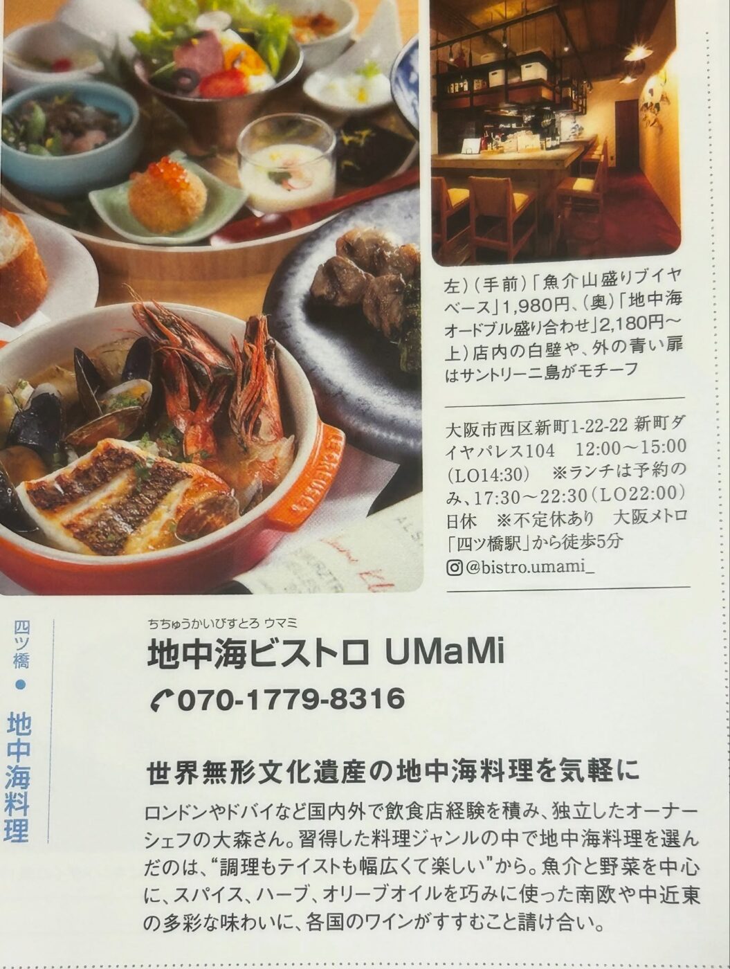 このたび、「Meetsのうまい本2026」 に地中海ビストロUMaMiを掲載していただきました🍽️